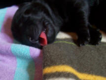 ersten Ausflug aus der Welpenkiste, und zwar in Aqua's Bootkissen |