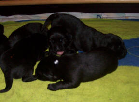 Rüden schwarz / 6 Hündinnen schwarz - 0/1 tot)