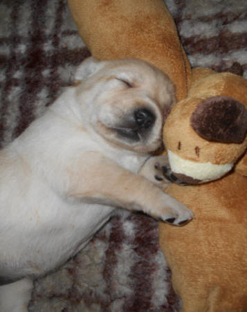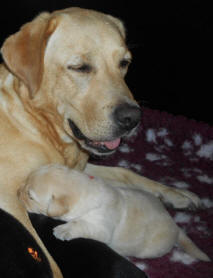 freue mich darauf, dass bald kleine gelbe und schwarze Welpen bei uns in der Wurfkiste liegen.