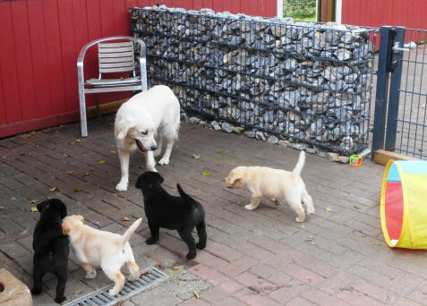 die Welpen aus dem Welpenauslauf im Büro